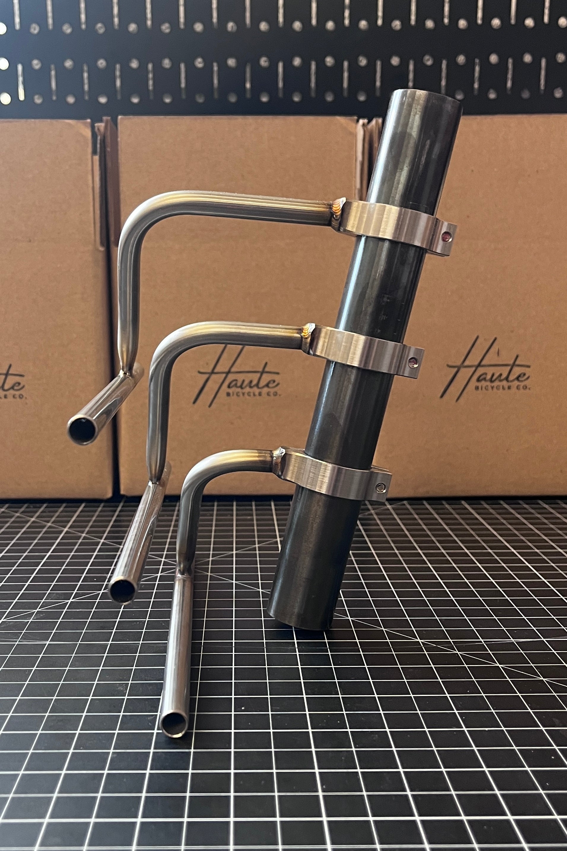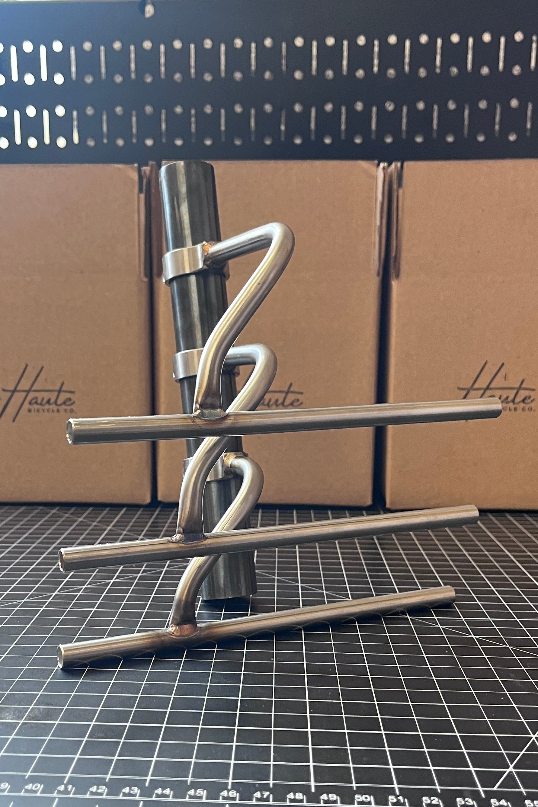 Each T-Bar is handmade in Richmond, Va. They are constructed from 3/8" stainless steel tubing tig welded to a machined stainless steel clamp. Lightweight and corrosion resistant, they are available in Raw Brushed and Powder Coat Black